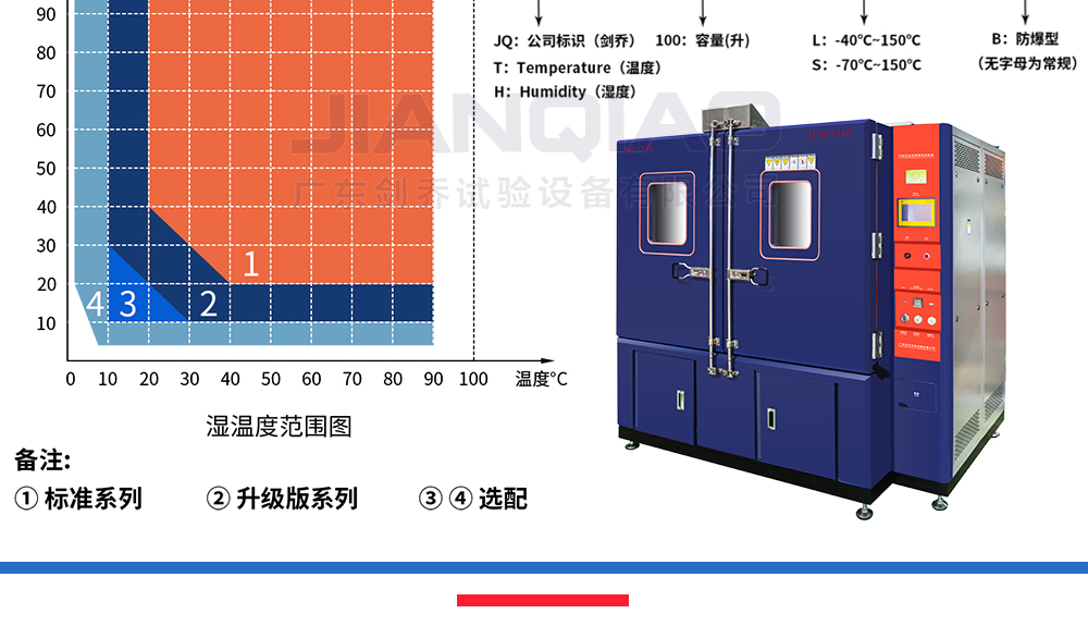 用途:可程式恒溫恒濕試驗箱 JQTH-1200L(屬于:雙開門非標定制款)主要用來測試各種材料耐熱、耐寒、耐干、耐濕的性能。本機采用智能中英俄文顯示7寸彩色觸控式屏幕畫面,操作簡單,程序編輯