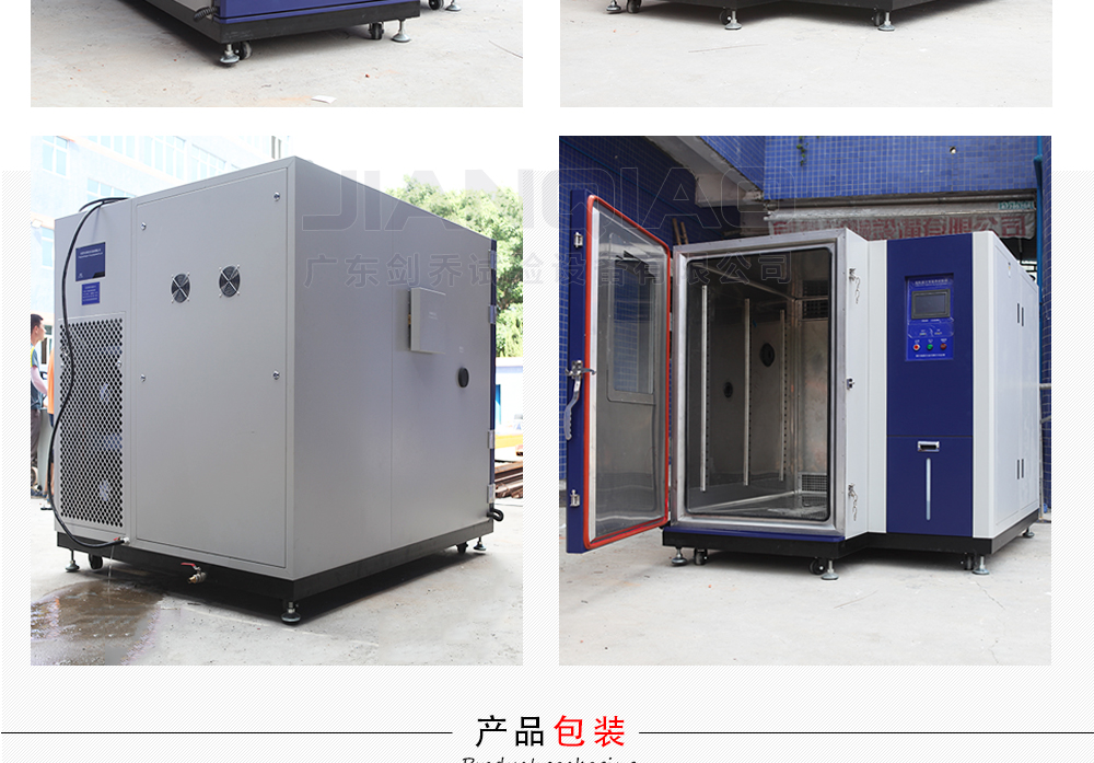 用途:廣東劍喬新款-可程式恒溫恒濕試驗箱1400L(屬于:非標定制款)主要用來測試各種材料耐熱、耐寒、耐干、耐濕的性能。本機采用智能中英俄文顯示7寸彩色觸控式屏幕畫面,操作簡單,程序編