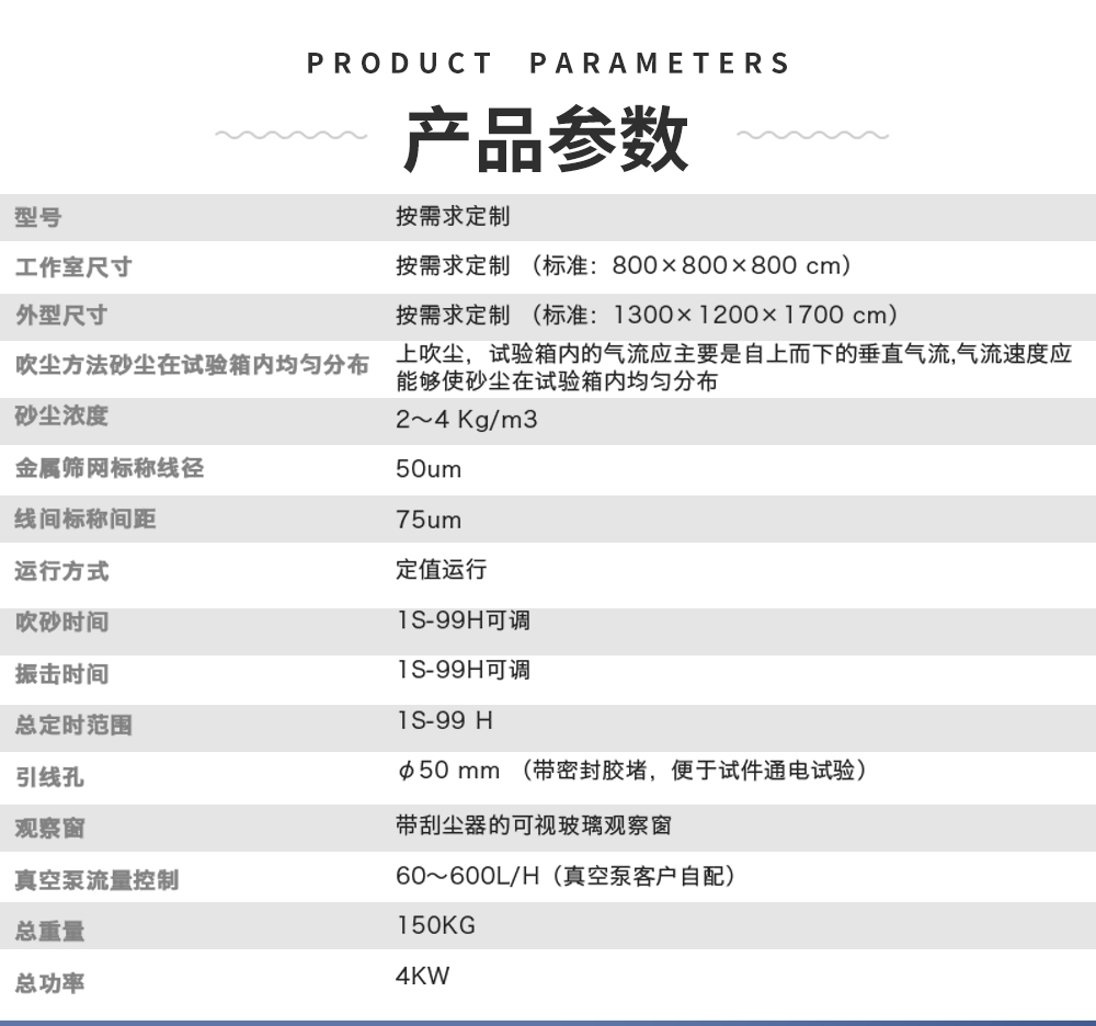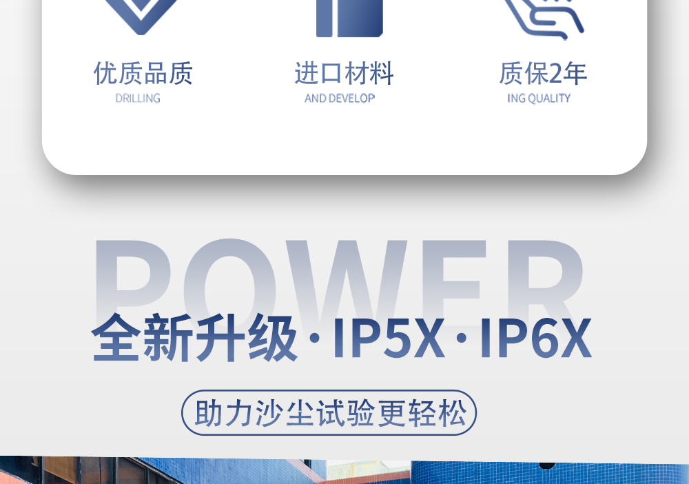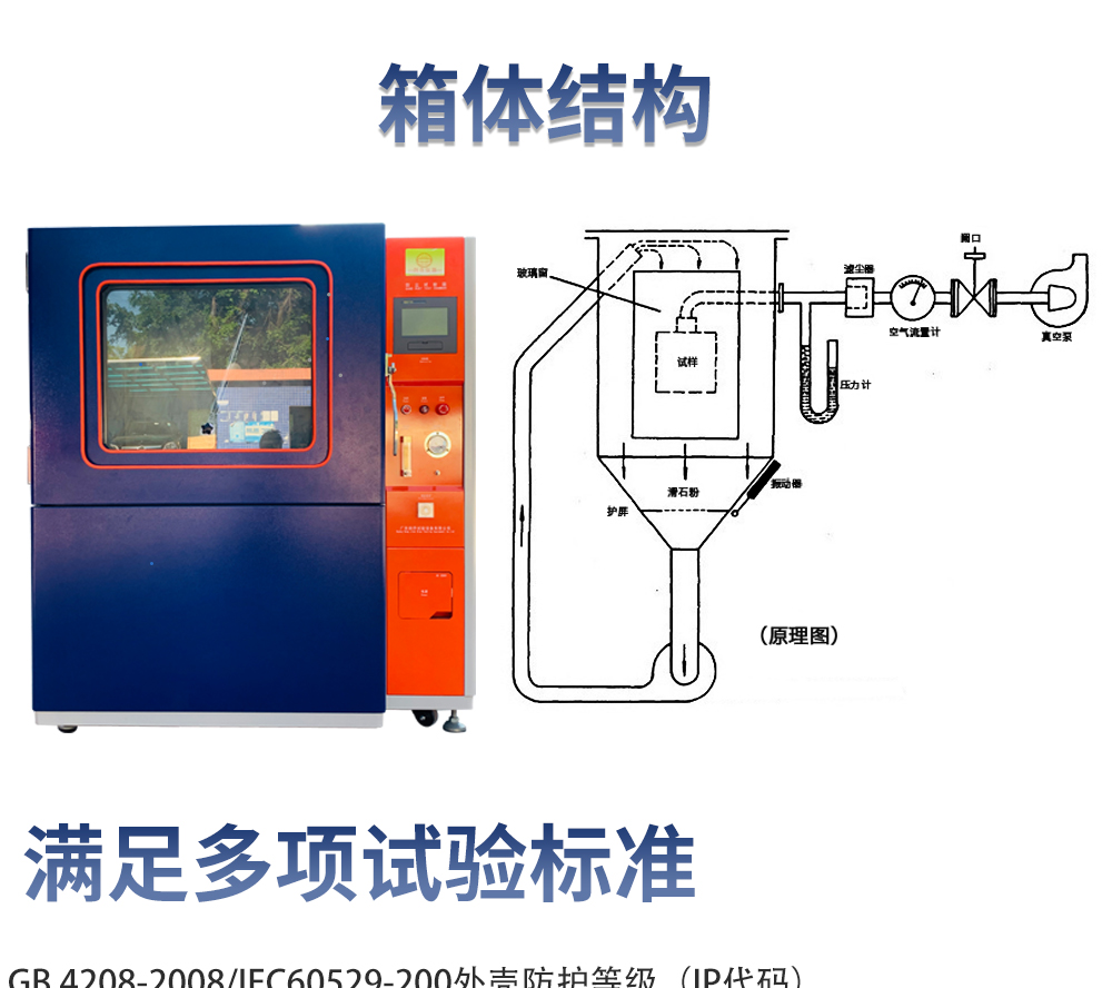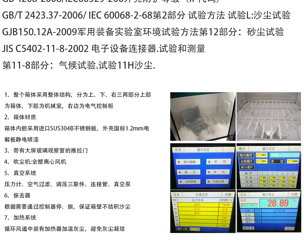用途:防塵試驗箱適用于防護等級 (IP code), GB/T 4942.2-93(低壓設(shè)備防護等級),GB 7000.1(燈具防護等級),DIN40050和IP5K0等校準設(shè)計制造。SC-015應(yīng)用于LED燈具和其它照明產(chǎn)品對IP5X和IP6X防塵等級測試。