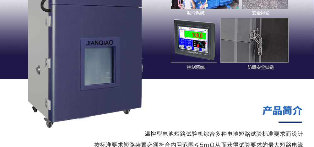 用途:溫控型電池短路試驗機綜合多種電池短路試驗標準要求而設計按標準要求短路裝置必須符合內阻范圍≤5mΩ從而獲得試驗要求的最大短路電流