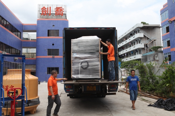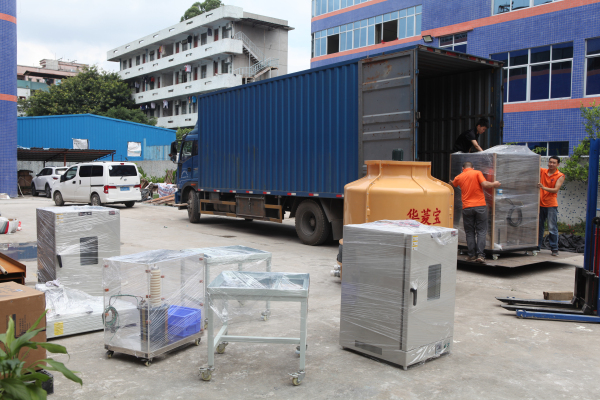 注:圖為發(fā)往美的冷熱沖擊試驗(yàn)箱裝貨中