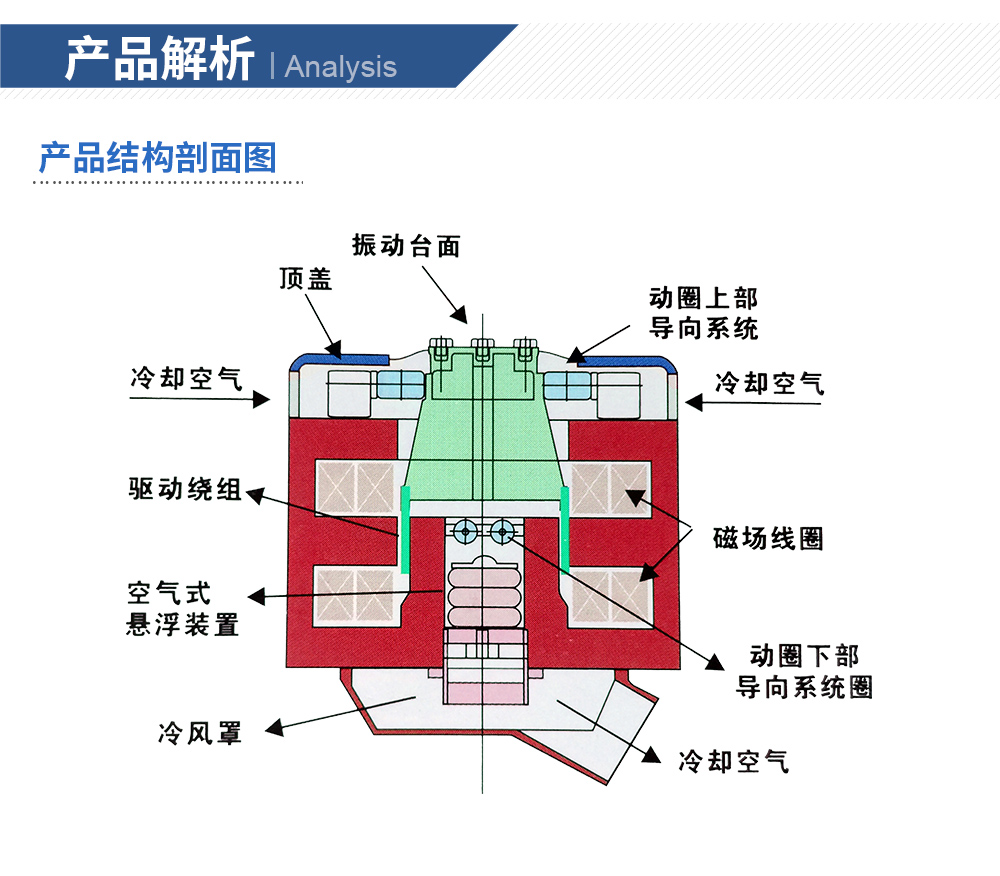 性能特點(diǎn):●強(qiáng)制風(fēng)冷 ●正弦激振力范圍: 1kN ~ 70kN●兩倍的正弦沖擊力(2噸以上可選三倍) ●輕質(zhì)動(dòng)圈,優(yōu)化設(shè)計(jì),耐振性能強(qiáng)●中心氣囊承載能力強(qiáng),低頻性能好 ●可配置水平滑臺(tái)●風(fēng)機(jī)冷卻效果好,噪音低 ●使用頻率可從1Hz開始●隨機(jī)與正弦激振力1:1 ●位移峰峰值最大可達(dá)100mm●耳軸氣囊隔震效果好 ●雙磁路設(shè)計(jì),漏磁低,磁場(chǎng)均勻●正弦、隨機(jī)、沖擊等試驗(yàn)功能 ●高效率、高可靠性功率放大器系統(tǒng)特點(diǎn):◎一階共振頻率高、使用頻率寬優(yōu)化的動(dòng)圈骨架結(jié)構(gòu)設(shè)計(jì),特別是對(duì)傳統(tǒng)結(jié)構(gòu)的動(dòng)圈骨架傳力角板等薄弱環(huán)節(jié)進(jìn)行增強(qiáng)設(shè)計(jì),有效提高了傳力剛度;采用膠接與螺釘連接的復(fù)合固定繞線環(huán)筒和繞線環(huán)筒增強(qiáng)膠孔的新結(jié)構(gòu),增強(qiáng)了繞組的剛度。顯著提高了動(dòng)圈的一階共振動(dòng)頻率,超過(guò)了國(guó)際同類產(chǎn)品。◎動(dòng)圈繞組可靠性高獨(dú)創(chuàng)的動(dòng)圈繞組加強(qiáng)環(huán)的新結(jié)構(gòu)和新工藝,顯著提高了動(dòng)圈繞組工作在大推力、高加速度振動(dòng)、沖擊和高溫環(huán)境中的耐振可靠性。◎風(fēng)冷效率高創(chuàng)新的電動(dòng)臺(tái)冷卻風(fēng)道設(shè)計(jì):改進(jìn)了進(jìn)風(fēng)結(jié)構(gòu),上磁環(huán)用長(zhǎng)槽型進(jìn)風(fēng)道取代圓孔型進(jìn)風(fēng)道;勵(lì)磁線圈采用蜂窩式風(fēng)道、中磁環(huán)采用雙層風(fēng)流式風(fēng)道、下磁環(huán)采用斜楔型風(fēng)道等新結(jié)構(gòu),顯著提高了冷卻效果。◎冷卻風(fēng)機(jī)冷卻風(fēng)機(jī)具有獨(dú)特的風(fēng)道等結(jié)構(gòu)設(shè)計(jì),風(fēng)機(jī)冷卻效果好,噪音低。◎水平和垂直試驗(yàn)帶水平滑臺(tái)的電動(dòng)振動(dòng)臺(tái)可以用于水平和垂直試驗(yàn),兩個(gè)方向的切換方式簡(jiǎn)單,翻轉(zhuǎn)方便。◎采用IGBT模塊功放采用性能可靠的MOSFET和IGBT模塊,具有很高的穩(wěn)定性和可靠性。◎安全性能產(chǎn)品符合歐洲標(biāo)準(zhǔn)測(cè)試要求,在功放上裝有緊急停止開關(guān),有效應(yīng)對(duì)突發(fā)事件。符合美國(guó)UL和CE安全要求。