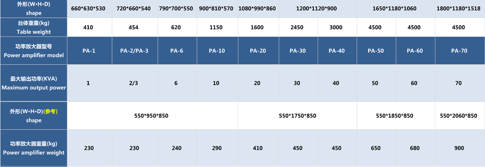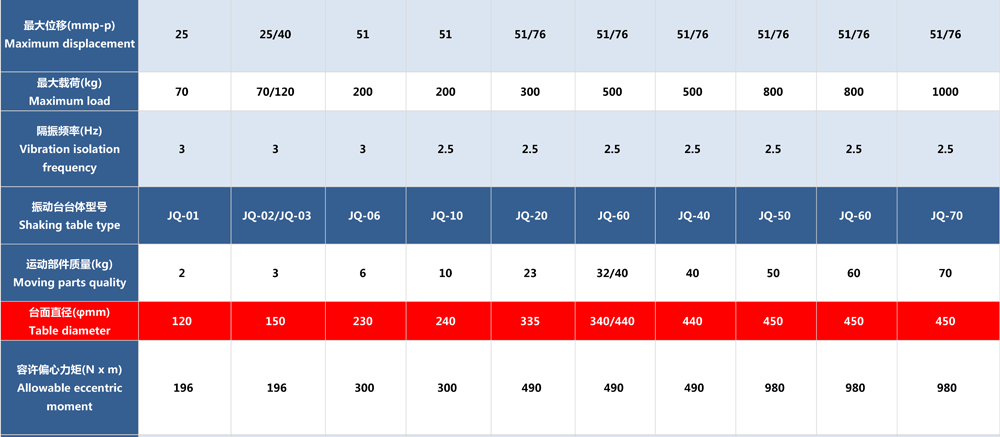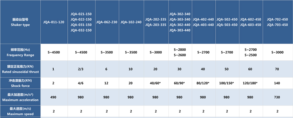 • JQA系列電動振動臺(風冷式)參數(shù)表