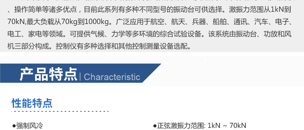 用途:風冷電動振動系統(tǒng),推力大,承載能力強,冷卻效率高??煞謩e完成三軸向的正弦振動試驗、寬帶隨機振動試驗以及經(jīng)典(半正弦、梯形、后峰齒)脈沖和沖擊響應譜試驗。