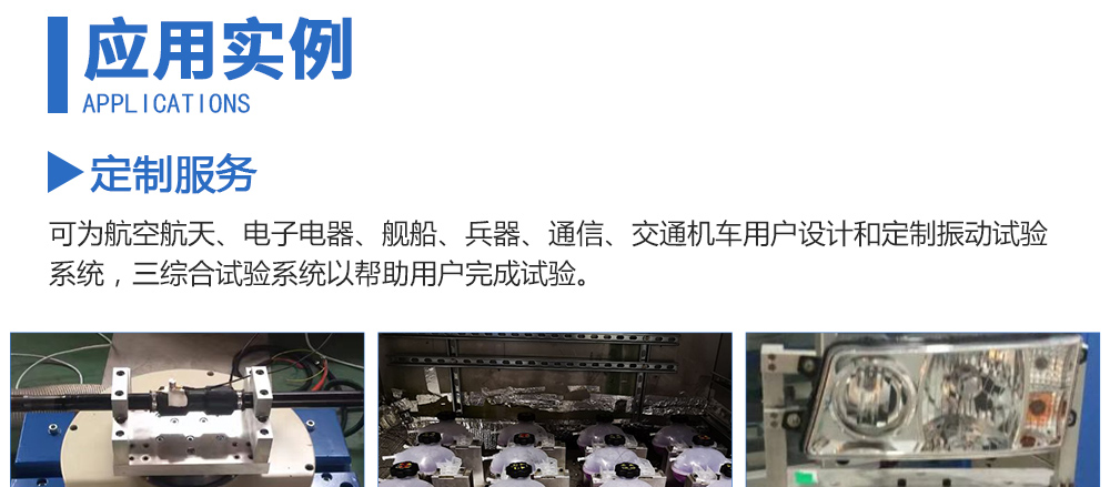 用途:可為航空航天、電子電器、艦船、兵器、通信、交通機(jī)車用戶設(shè)計和定制振動試驗(yàn)系統(tǒng),三綜合試驗(yàn)系統(tǒng)以幫助用戶完成試驗(yàn)。